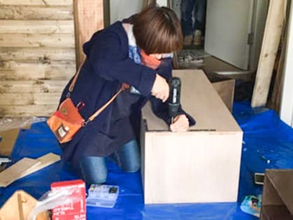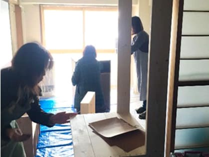 ここから「DIYプランナー®養成講座」でDIYにおける思い描くイメージを自由に形にするべく講座を受講し卒業された受講生の皆様にも作業参加して頂きました。