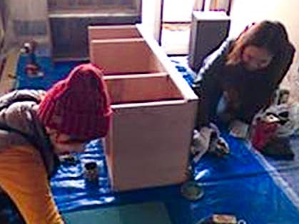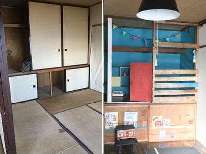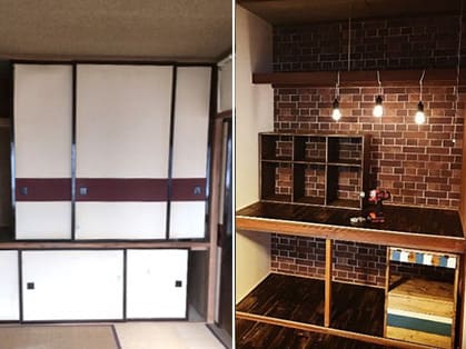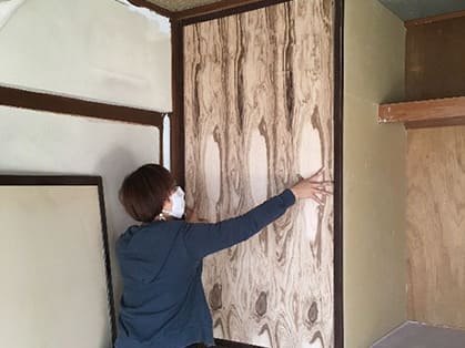 製作物が終わったらいよいよ搬入・内装の仕上げです。 こちらはふすまのリメイク、今ある素材を出来る限り活かします。